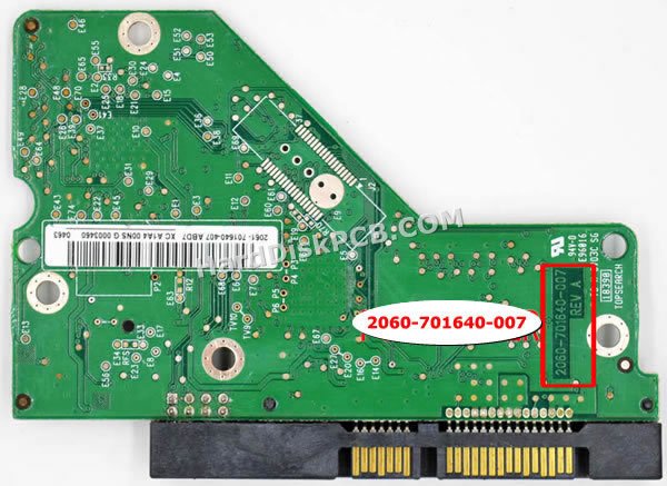 El «Número de PCB» es 2060-701640-007. El «Número de PCB» del disco duro Western Digital comienza con «2060-***», el número está impreso en la placa. Cuando desee reemplazar la placa, la placa donante debe tener el mismo «Número de PCB» que su placa original. Cambio placa en disco duro Western Digital