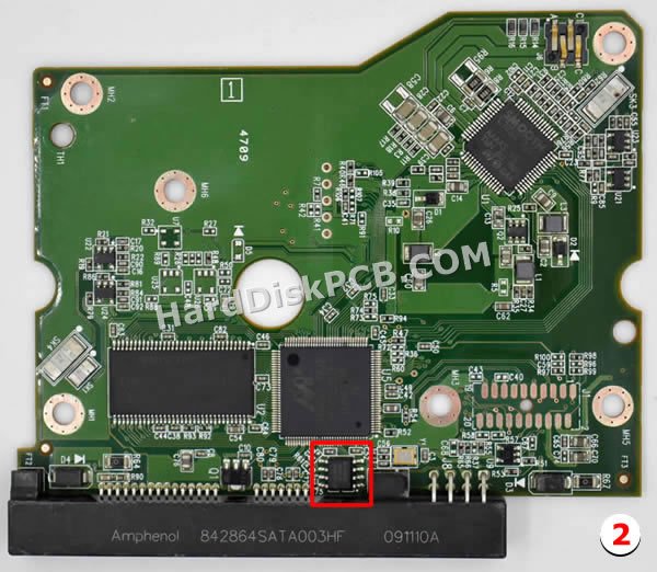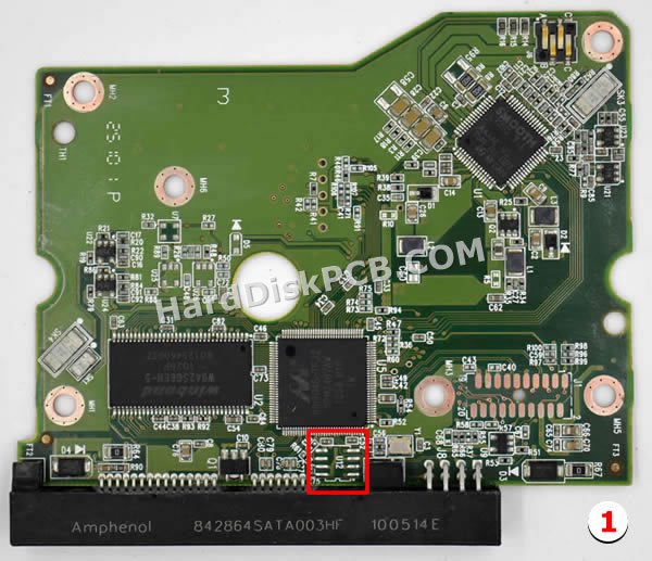 El «Número de PCB» es 2060-771642-001. El «Número de PCB» del disco duro Western Digital comienza con «2060-***», el número está impreso en la placa. Cuando desee reemplazar la placa, la placa donante debe tener el mismo «Número de PCB» que su placa original. Cambio placa en disco duro Western Digital